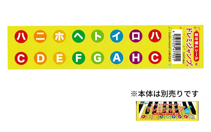「ドレミジャンプ®」の「ドレミファソラシド」の〇枠に合わせ、着せ替えシールの「ハニホヘトイロハ」を張り付けることで、そのまま表記を着せ替えることができます!